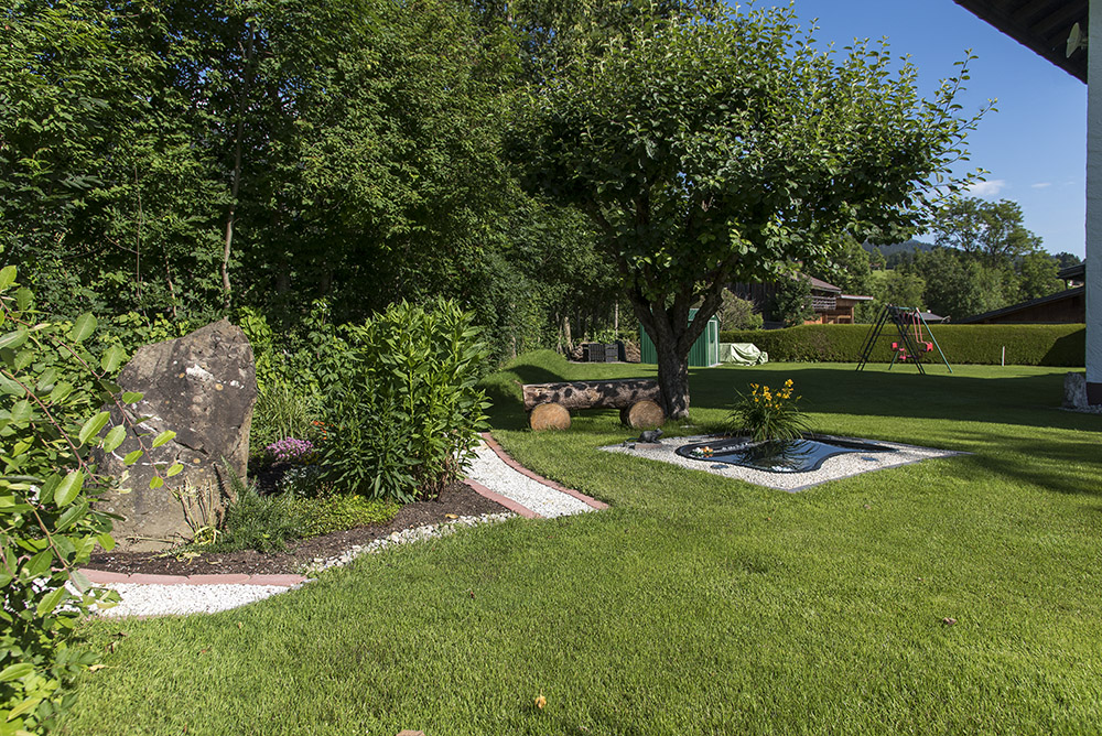 Vom Wohnzimmer aus erreichen Sie die Süd-Terrasse und den großzügigen Garten. Sitz- oder Liegemöbel sowie ein Grill sind vorhanden. Damit auch die Kinder entspannt sind, gibt es einen Sandkasten, eine Schaukel und zahlreiche Spielgeräte.