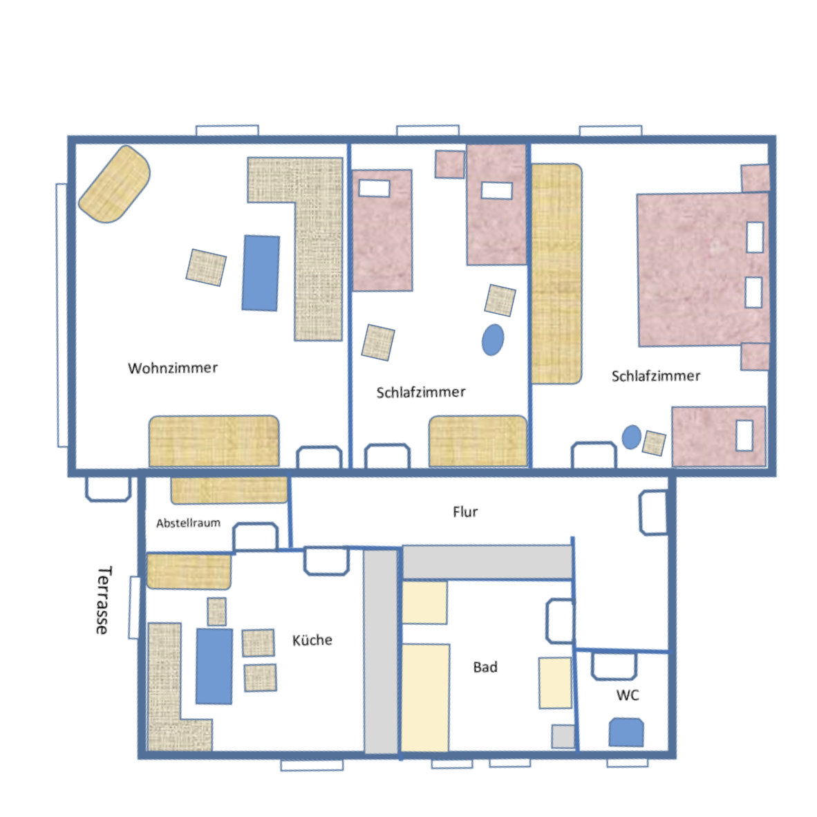 In unserer großzügigen, komfortablen, ruhig gelegenen Ferienwohnung finden 2-4 Personen auf ca. 80qm ausreichend Platz.